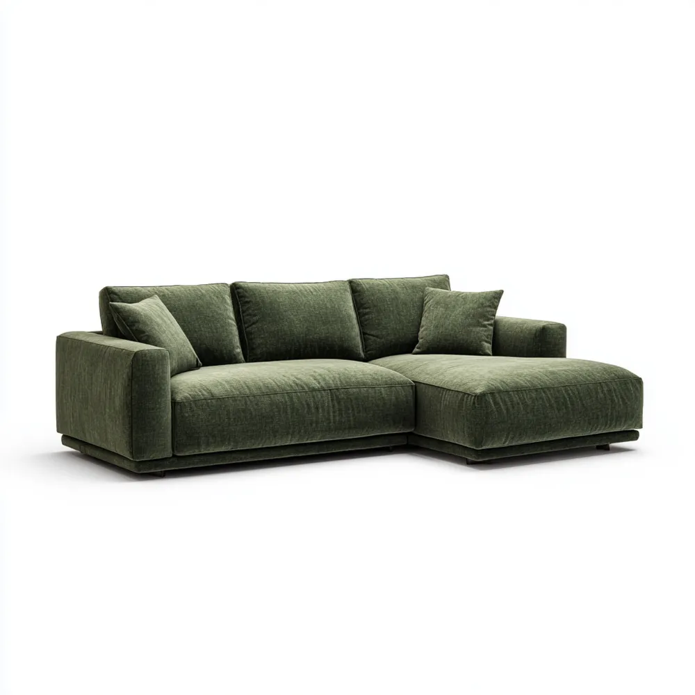 Matériau et FabricationCe canapé est fabriqué en tissu de haute qualité avec une finition en Vert profond, offrant une texture douce et agréable au toucher. La structure est robuste pour garantir une durabilité accrue.